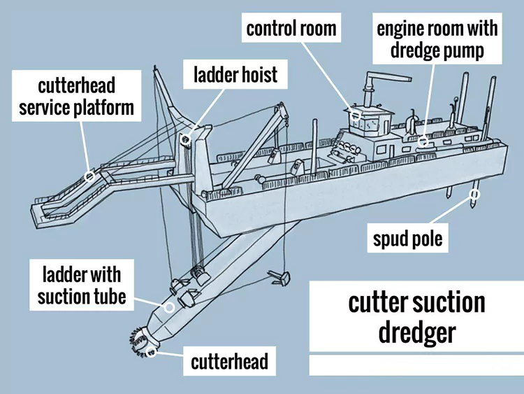 Temel yapıları arasında entegre "kazı-taşıma-boşaltma" operasyonlarına olanak tanıyan bir kesici sistem, bir emme ve boşaltma sistemi, bir konumlandırma ve çaprazlama sistemi ve bir güç sistemi bulunmaktadır. Nehir tarama ve ıslah projelerinde yaygın olarak kullanılmaktadır.